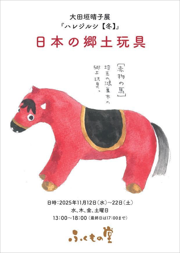 原画、画文セットの展示販売。著書の販売もしております。晴子さんが実際に購入した郷土玩具(非売品)実物も展示。原画、画文を見て、読んで楽しめる個展。皆様のお待ちを作家共々お待ちしております。